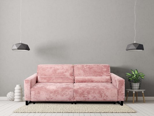 Обивка из велюра не только роскошно выглядит, но еще и практична в эксплуатации, а также имеет отличные показатели износоустойчивости. Высокие опоры из профильной стальной трубы придают дивану особую стилистику, декоративный кант придает изделию законченный вид, помогает сохранить форму и снижает нагрузку на чехол. Поясничные подушки являются дополнительной опорой и служат поддержкой для спины.