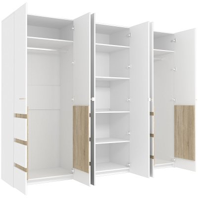 Глубокий распашной шестидверный шкаф для одежды и белья с зеркалами с чёткой организацией внутреннего пространства обеспечивает комфортное хранение вещей всей семьи. Конструктивом Шкафа предусмотрены: отделение для хранения белья с регулируемыми по высоте полками и 2 отделения для одежды со стационарной штангой. Дверки Шкафа для одежды и белья АНОНА 7 с доводчиками для плавного и бесшумного закрывания. Их украшают аккуратные вставки в декоре Дуб Сонома и зеркала во весь рост с фацетом.