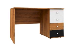Стол письменный отличается нестандартным решением для столешницы, которая максимально адаптирована для потребностей современных детей и работе на компьютере. Под откидной её частью, которая открывается за плавный вырез, прячется ниша для хранения и отверстие с заглушкой для вывода проводов, чтобы они не запутывались и не мешали ребенку. Если ребенок ещё не занимается за компьютером, то нишу можно использовать и для размещения органайзеров с карандашами, фломастерами и красками, чтобы они не отвлекали от творчества. Дополняют стол ящики на шариковых направляющих. За счет просторной рабочей поверхности, а также возможности левосторонней и правосторонней сборки письменный стол одинаково удобен как для левши, так и для правши.