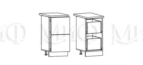 Глубина нижних шкафов без учета столешницы:490 мм, с учетом столешницы 600 мм