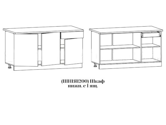 Глубина нижних шкафов без учета столешницы:490 мм, с учетом столешницы 600 мм