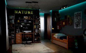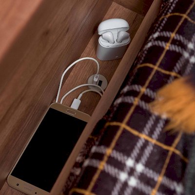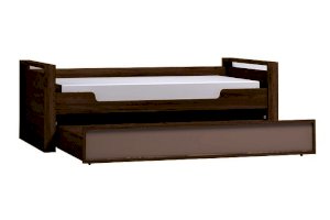 Детская или подростковая кровать-тахта с большим ящиком глубиной 182 мм на выкатных роликах. Его можно использовать как место для хранения постельного белья или как дополнительное спальное место для незапланированных гостей. Для полноценного спального места достаточно убрать разделитель и положить матрас. Размер матраса для основного спального места 190х90 см. Размер матраса для дополнительного спального места: 190х80 см, высотой до 18 см. Дополнительные боковые ниши в кровати помогут подростку держать под рукой необходимые перед сном вещи. Бонусом для современных детей станет компактная встроенная в кровать USB зарядка для телефонов и планшетов.