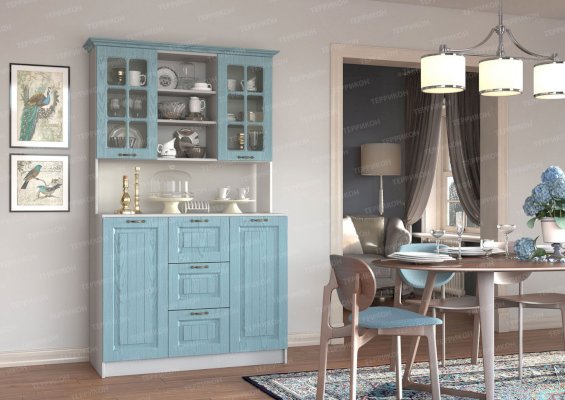 Кухня Кантри изговаливается также в цветах серый/роялвуд голубой; серый/роялвуд светлый; серый/роялвуд бирюза. Модули в этих цветовых решениях вы сможете найти в нашем интернет-магазине.