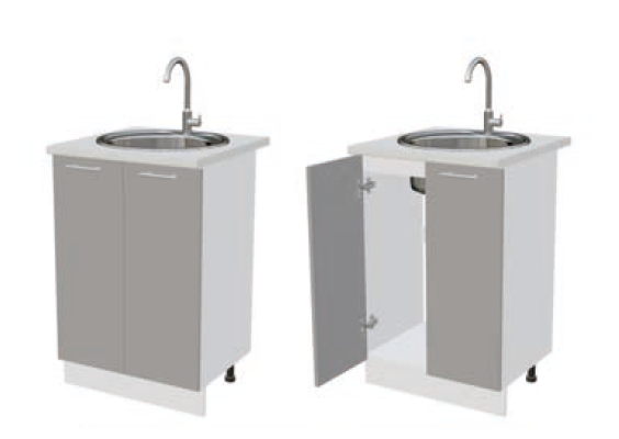Глубина нижних шкафов без учета столешницы: 444 мм, с учетом столешницы 600 мм