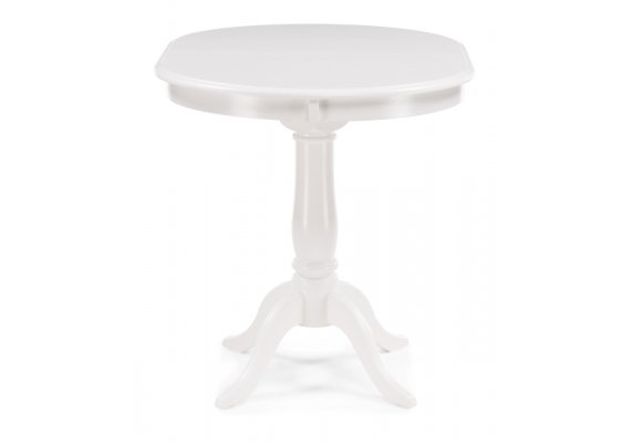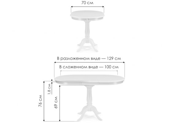 Ножки стола также выполнены из массива гевеи, обеспечивая устойчивость и надежность. Столешница изготовлена из МДФ с шпоном, что придает ей элегантный и изысканный внешний вид. Длина стола в разложенном виде 129 см, что позволяет комфортно разместить до 4 человек за обеденным столом.