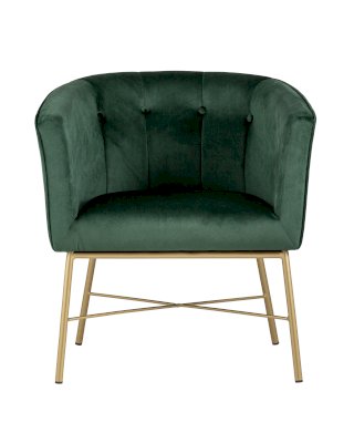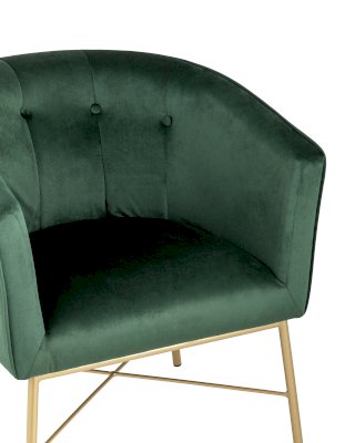Современное кресло с подлокотниками и металлическими ножками. Обивка выполнена из прочного и износостойкого велюра. Широкая спинка, переходящая в подлокотники высотой 70 см от пола, и мягкое сиденье обеспечивает удобную посадку и уют. Украшает кресло декор на внутренней стороне спинки и металлический каркас в золотом цвете.