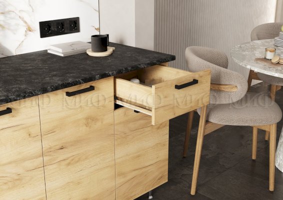 Глубина нижних шкафов без учета столешницы: 444 мм, с учетом столешницы 600 мм