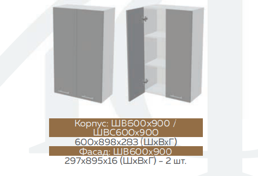 Глубина верхних шкафов: 300 мм