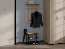 Удобная и гармоничная вешалка для одежды, помимо крючков для одежды имеется полка для головных уборов.