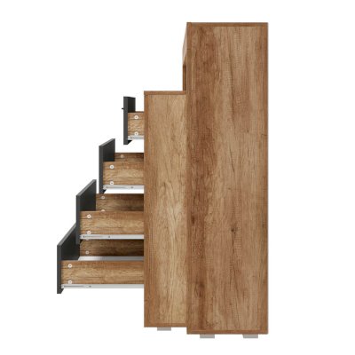 Комод многофункциональный Прима КМ-17  - удобная система хранения для одежды, постельных принадлежностей или других хозяйственных аксессуаров. Все необходимые вещи можно расположить на полках за распашной створкой, а также в трёх вместительных выдвижных ящиках на роликовых направляющих, которые обеспечивают легкую и бесшумную эксплуатацию модели.
