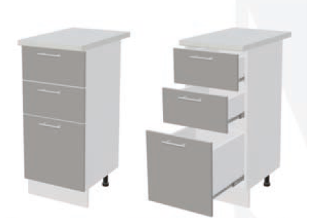 Глубина нижних шкафов без учета столешницы: 444 мм, с учетом столешницы 600 мм